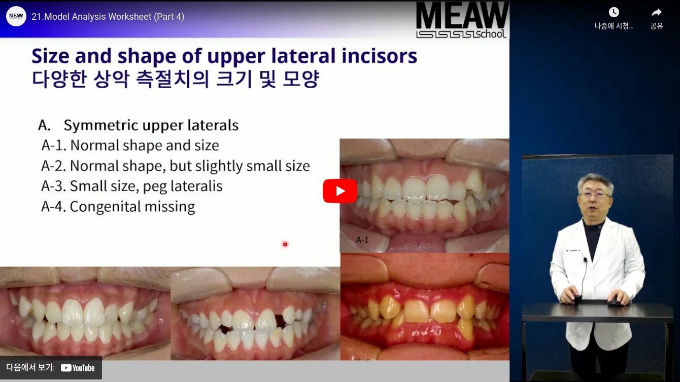 SpeakerDr. Jeong-il Kim LanguageKorean SubtitleEnglish Running Time 16:44 Price Free Sign Up 1 Molar relationship Half Class II Full Class II Half Class III Full Class III Positional deviation Midline deviation Curve of Spee Curve of Wilson Anterior Bolton ratio Overbite Overjet Intercanine width Transpalatal width