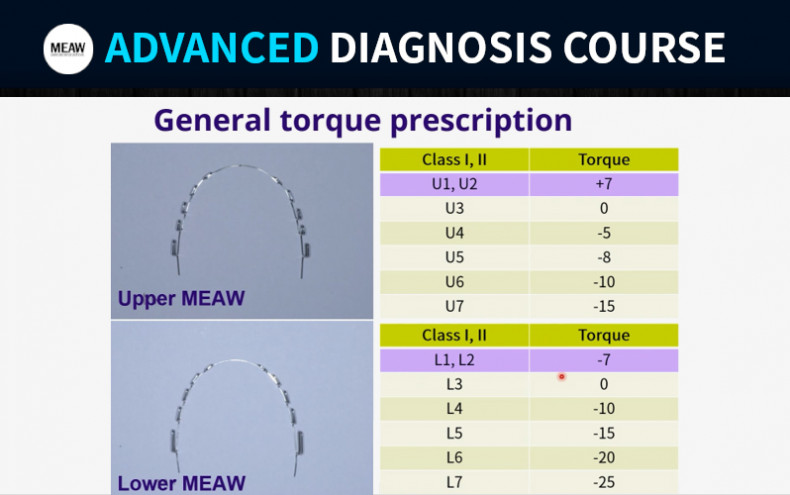 1) Upper anterior torque in upper MEAW2) Upper posterior torque in upper MEAW3) Lower anterior torque in lower MEAW4) Lower posterior torque in lower MEAW5) Check and measuring torque